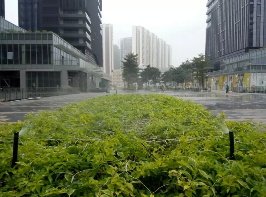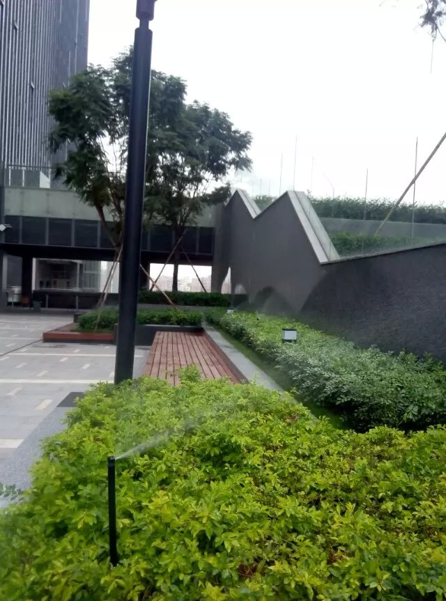 下圖為華為在天安云谷的辦公場所,其樓前草坪及樓層平臺綠化灌溉均采用了亨特灌溉系統(tǒng)。