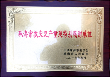 9月,中共珠海市委市人民政府授予綠友集團(tuán)“珠海市救災(zāi)重建特別感謝單位”榮譽(yù)稱(chēng)號(hào)。