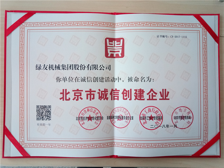1月,綠友集團(tuán)通過復(fù)審,獲得“北京市誠信創(chuàng)建企業(yè)”證書。