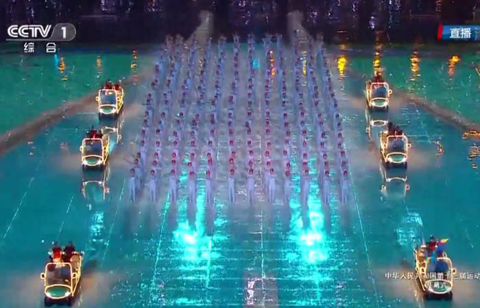 萬(wàn)人矚目的第十三屆全運(yùn)會(huì)于8月27日晚8點(diǎn)在天津奧林匹克體育中心“水滴”舉辦。本屆全運(yùn)會(huì)開幕式的文藝展演由序幕潮起千帆和分別反映天津迎全運(yùn)、健康中國(guó)、迎接未來主題的三幕展演組成。通過強(qiáng)烈吸睛、嘆為觀止的3D效果,再加上表演者的動(dòng)態(tài)有機(jī)結(jié)合,上演了一場(chǎng)聲光電的視覺盛宴。