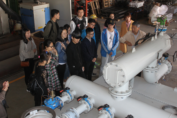 隨后,李總與師生們一起,觀看了草坪綠地灌溉噴灑、造霧系統(tǒng)設(shè)備的現(xiàn)場(chǎng)演示,參觀了產(chǎn)品展廳,了解了泵站的原理性能和生產(chǎn)工序。綠友集團(tuán)派專人為大家作詳細(xì)地講解和介紹。