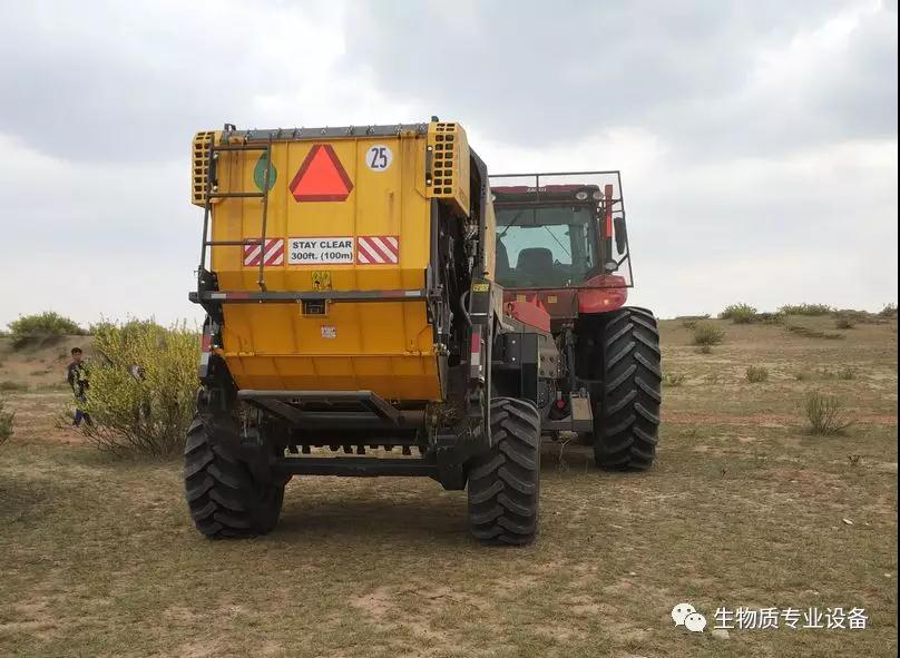 在為期4日的演示過程中,設備表現(xiàn)完美,超乎想象。在拖拉機的牽引下,一行行的檸條被設備吃進肚子,消化一會便后拉出個大大的“金粑粑”。