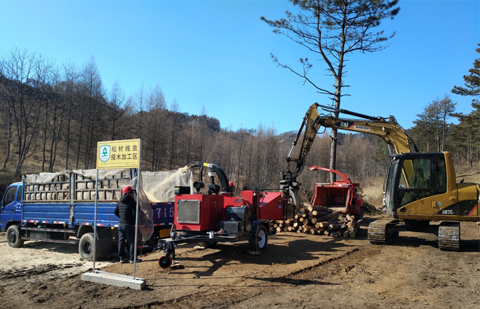 綠友集團總部森防裝備事業(yè)部、售后服務部、撫順綠友園林機械有限公司協(xié)同在撫順市大伙房實驗林場現(xiàn)場給參會人員講解、演示了GREENMAN CM15R病疫木粉碎機、CH25C病疫木粉碎機在山場就地粉碎處理感染松材線蟲病疫木方案,與會嘉賓紛紛記錄、拍照,索取資料,積極響應國家關(guān)于松材線蟲病疫木山場就地粉碎處理的相關(guān)政策。