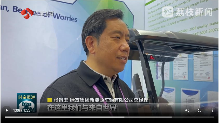 江蘇衛(wèi)視電視臺,采訪綠友集團新能源車輛有限公司總經理張得玉先生,他講到:在這里我們與來自世界的100多個國家和地區(qū)的采購商,面對面交流,這種深度的互動溝通,讓我們迅速捕捉到國際市場的最新變化。