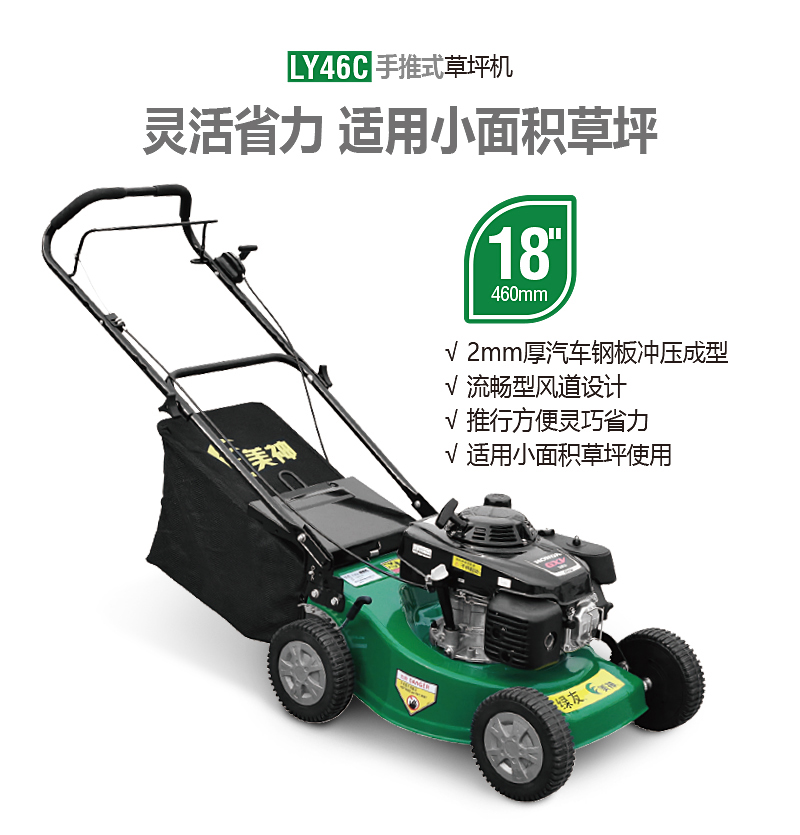 18寸草坪修剪機(jī),適合小面積草坪的修剪作業(yè):如社區(qū),單位,學(xué)校,廣場等場所。