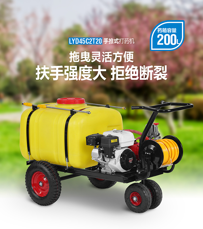 200L手推機(jī)動噴霧機(jī)是一款結(jié)構(gòu)緊湊,靈活實用的園林植保作業(yè)機(jī)具。