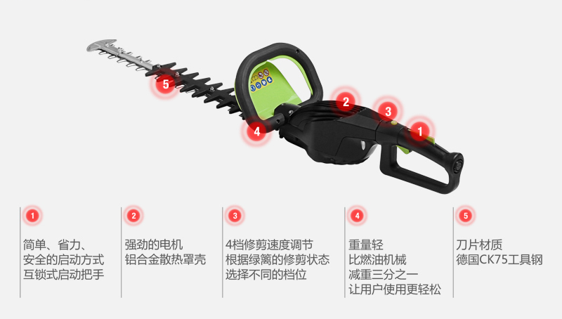 3. 4檔調(diào)速設(shè)計(jì),根據(jù)植物的生長(zhǎng)狀態(tài)選用合適的修剪速度。