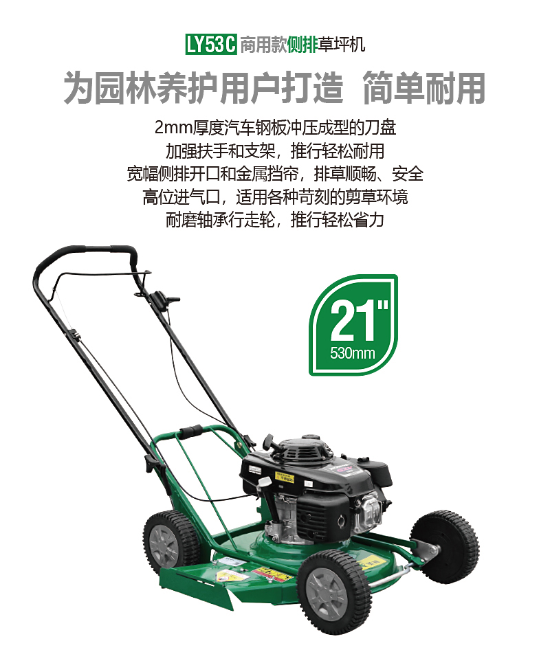 經(jīng)典純側(cè)草坪機,是根據(jù)國內(nèi)草坪修剪習(xí)慣,設(shè)計的一款性價比高的草坪修剪機,結(jié)構(gòu)簡單耐用,寬大側(cè)排草開口配置金屬金屬擋簾,安全耐磨。